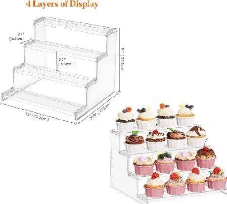 Acrylic Display Risers Cupcake Stand for Food Desserts, Perfume Organizer 4 Tier Clear Shelf Display Stand Funko POP Collections, Perfume Stand for Organizer and Decoration