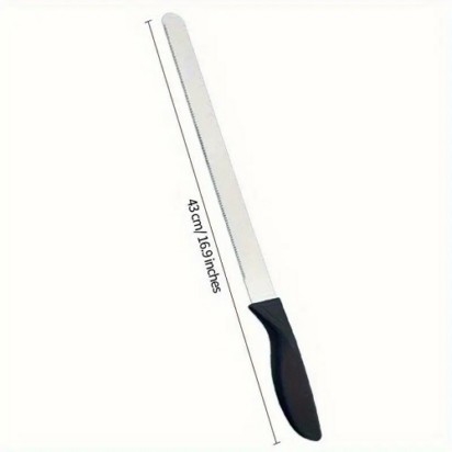 17 Inch Cake Knife: The 17 Inch Cake Knife features a serrated stainless steel blade, perfect for slicing through large cakes with precision. Ideal for weddings, birthdays, and other celebrations.