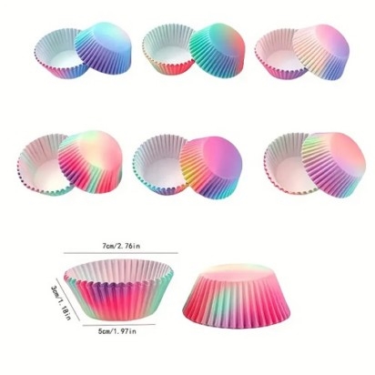 The Baking Cup Gradient Rainbow Colors offer a vibrant and fun way to present your baked goods, perfect for parties, celebrations, and everyday treats. Ideal for cupcakes!