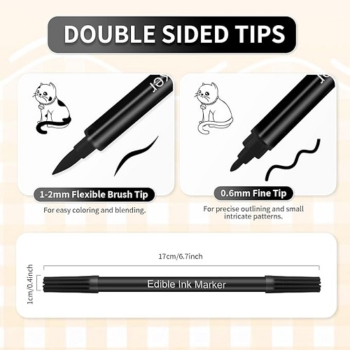 Black Edible Marker Pens are Dual-tip pens with thick and thin points for decoration versatility on desserts of all sizes