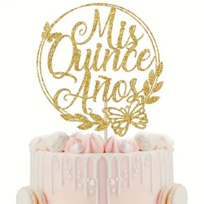 Cake Topper Mis Quince Gold
