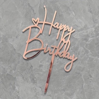 Cake Topper Rose Gold “Happy Birthday” with Heart, Perfect decorations for cakes on birthdays, pink princess-themed parties.