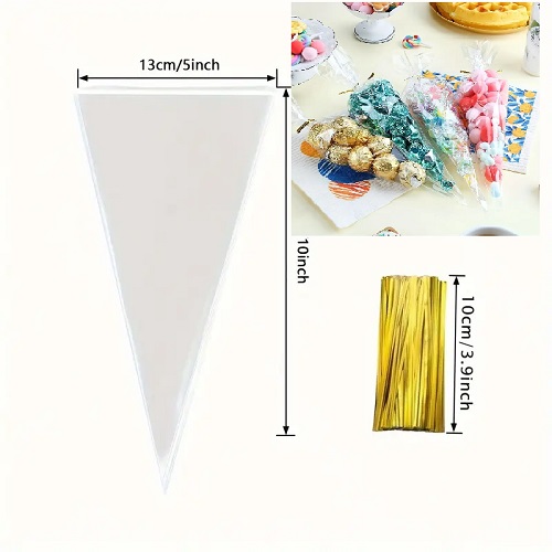 Clear Cone Treat Bags with Gold Ties If you’re looking for a way to package your popcorn, gummies, or other assorted candies, Cone Treat Bags are a great option to consider.