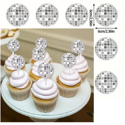 Cupcake Pick Paper Silvery Disco Ball 12 Count