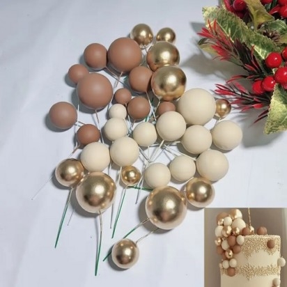 Foam Cake Balls Brown, Tan, Gold 21 Pieces, Decorations Mini Balloon Cake Topper Balls made of Foam for Cake Decorating Birthday Parties, Weddings, Anniversaries, and more.