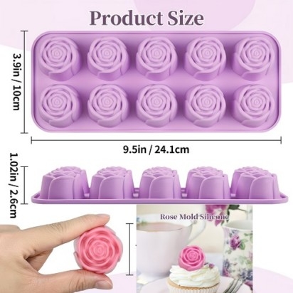 Silicone Mold Roses 1.5″ Wide Base-10 Cavity. The Silicone Mold Roses with a 1.5″ wide base features 10 cavities, perfect for crafting beautiful rose-shaped designs.