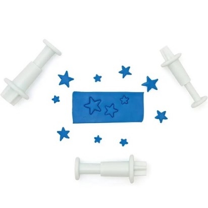 Star Plunger Cutter 3 Piece Set. The Star Plunger Cutter 3 Piece Set features durable stainless steel cutters in various sizes, perfect for creating star-shaped decorations in cookies, fondant, or pastries. Ideal for baking enthusiasts and decorators!
