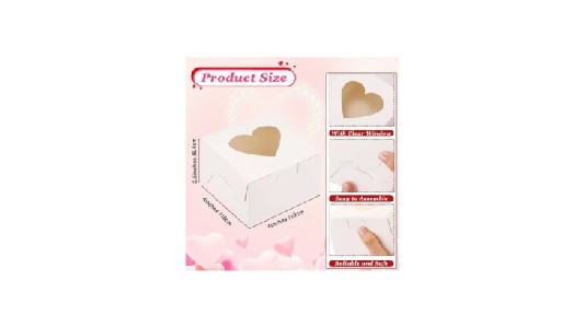 Treat Box White With Heart Window, 4″ x4″ x 2.5 inches. The Treat Box Valentine features a charming heart window, perfect for showcasing sweet treats. Ideal for gifts, party favors, or romantic surprises. Dimensions: 4″x4″x2.5 inches