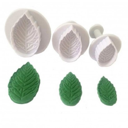 - This three-piece set of Veined Rose Leaf Plunger Cutters is ideal for use with a wide range of edible and non-edible materials, including Sugar paste (rolled fondant), petal paste (gum paste), marzipan, craft clays, and much more.
