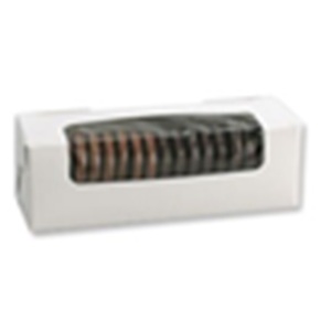 White Box w/window 4.78 x 1.58 x 1.58 inches, the perfect size for an Oreo cookie and a small fudge cookie.